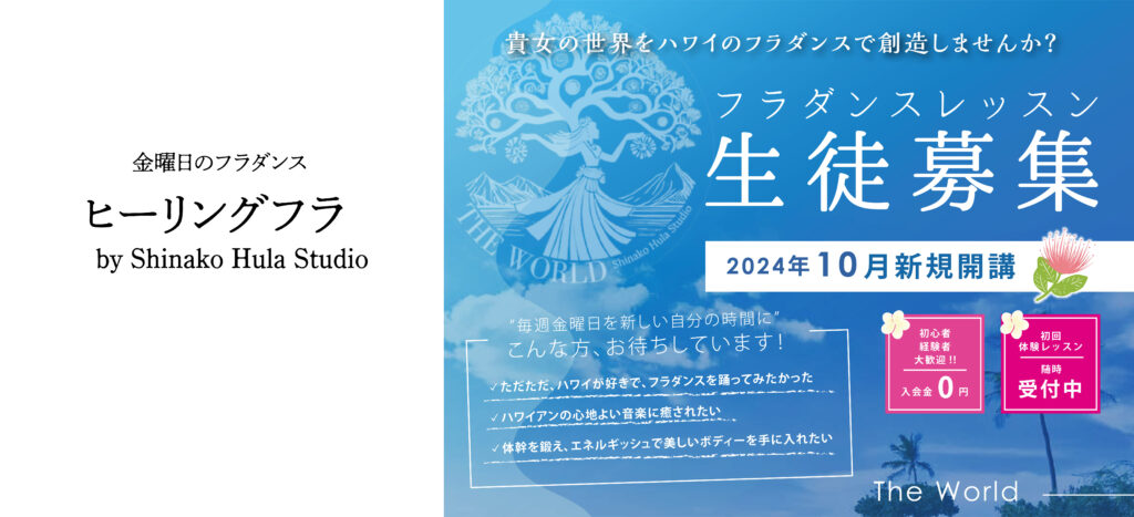 ハワイの文化であるフラを、正しく理解してもらうことを心がけながらレッスンをしています。からだを動かし気持ちもリフレッシュすることを1番の目標にしています。少人数制ですので、これまで敷居が高いと感じていた方、初心者さんでも大丈夫、体験参加お待ちしています!