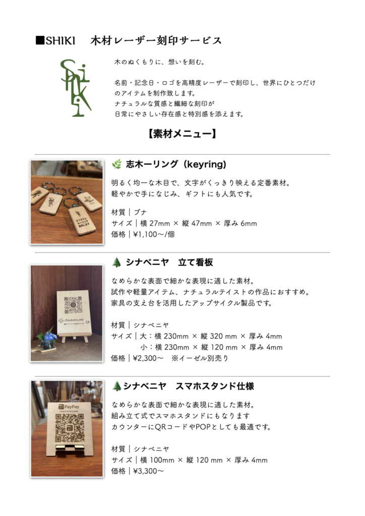 SHIKIの木材レーザー刻印サービス。
