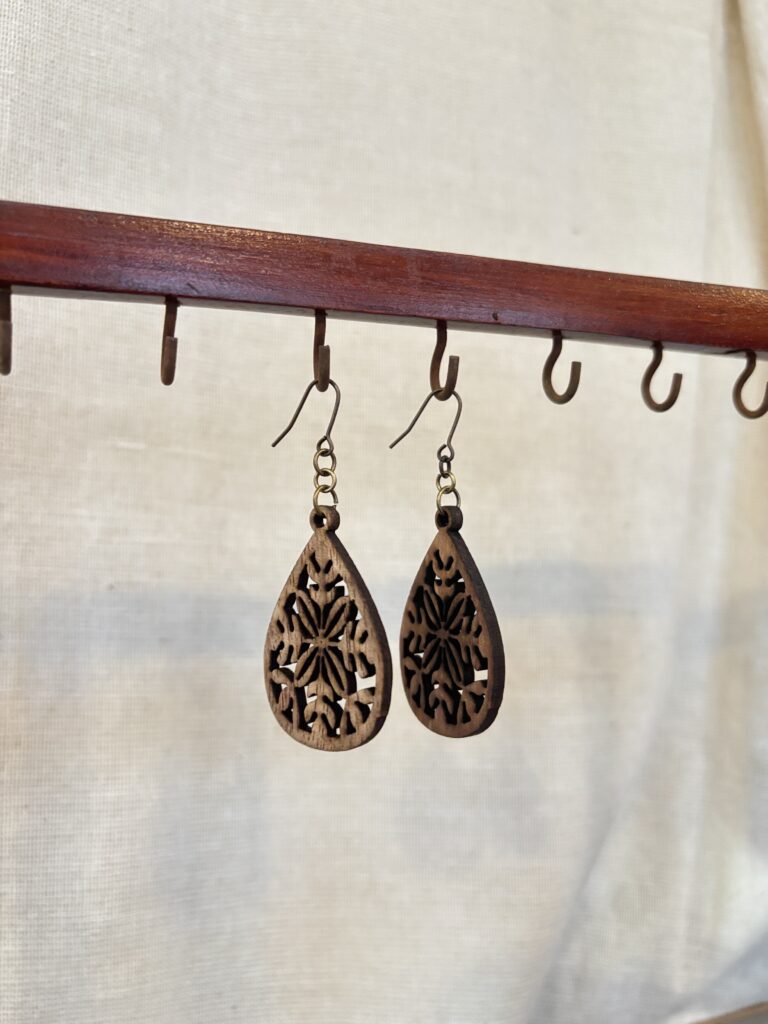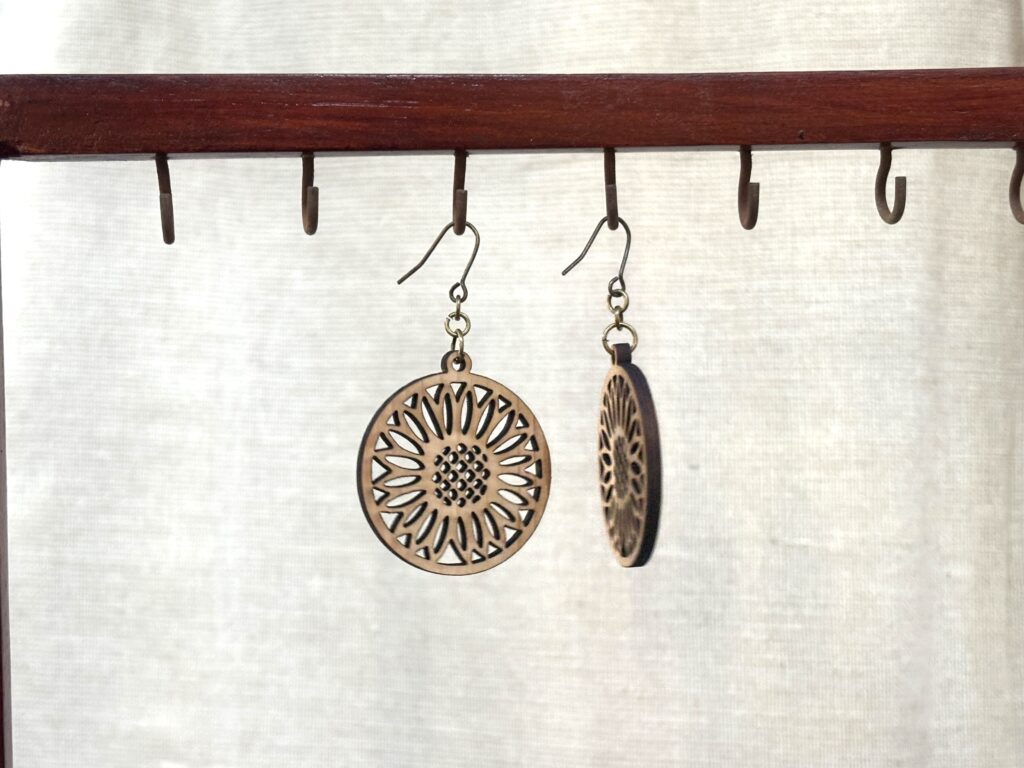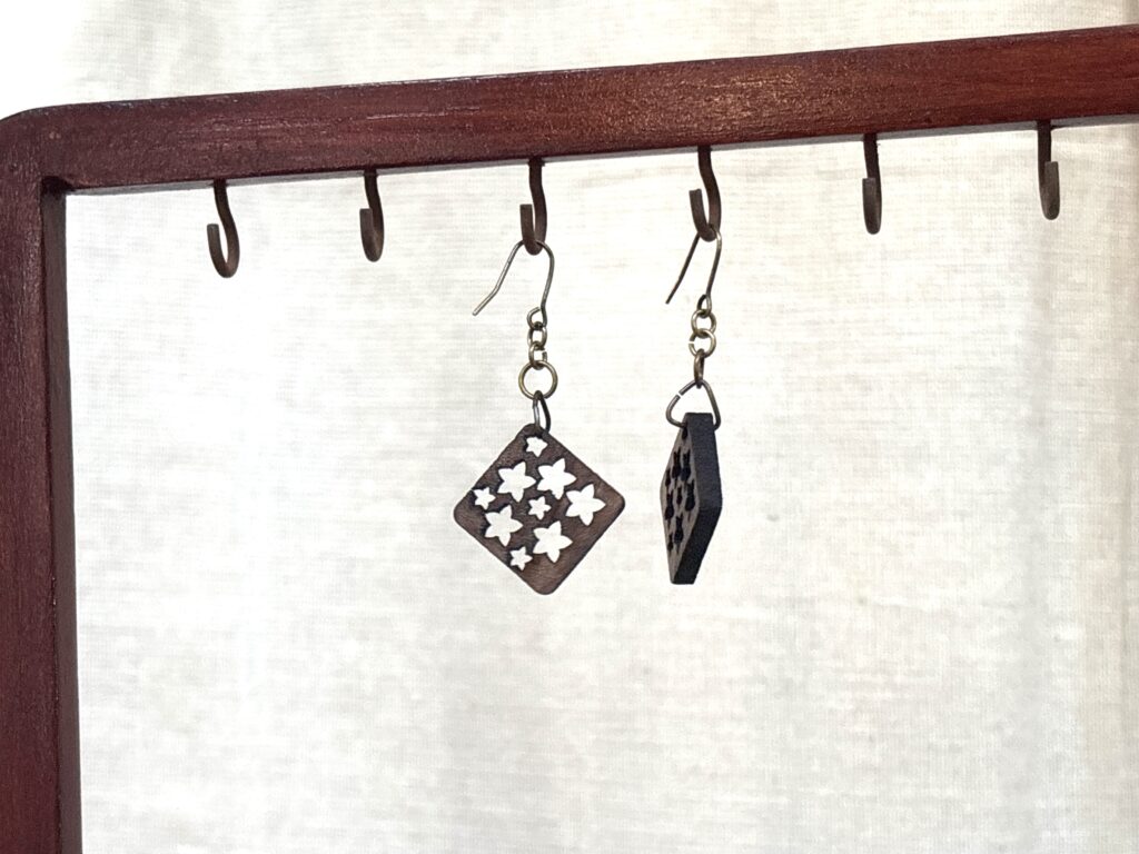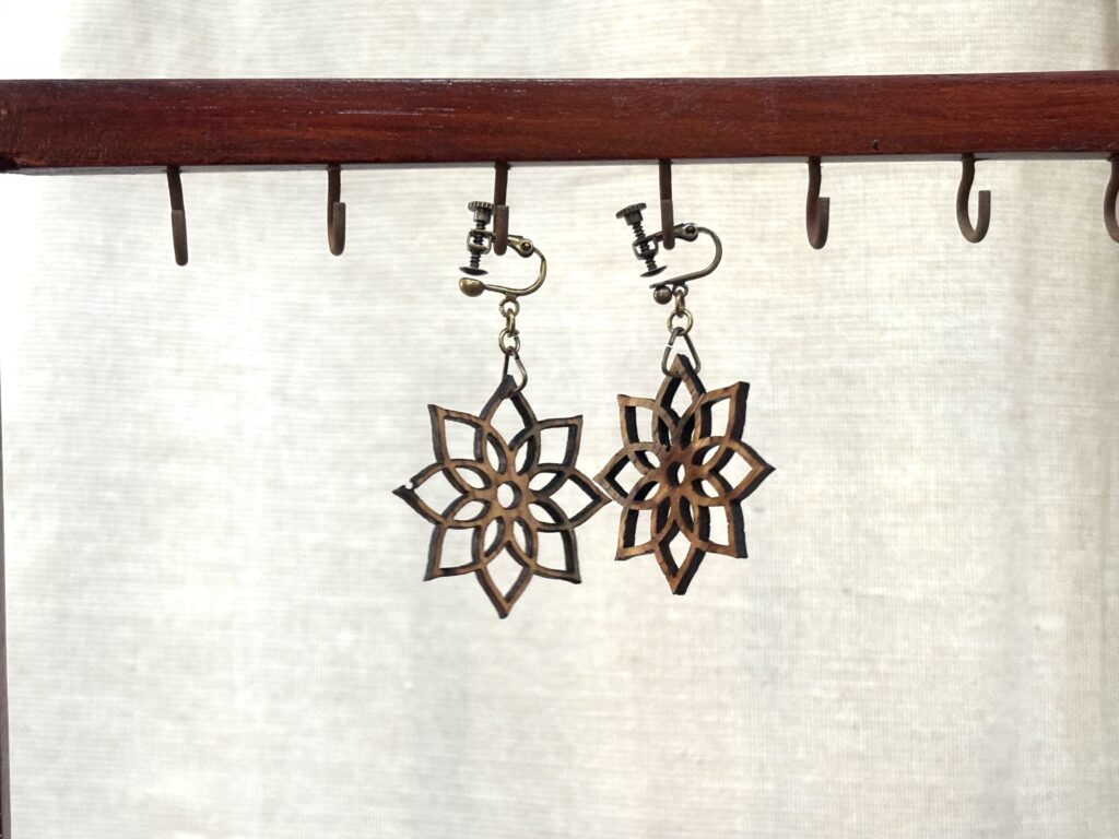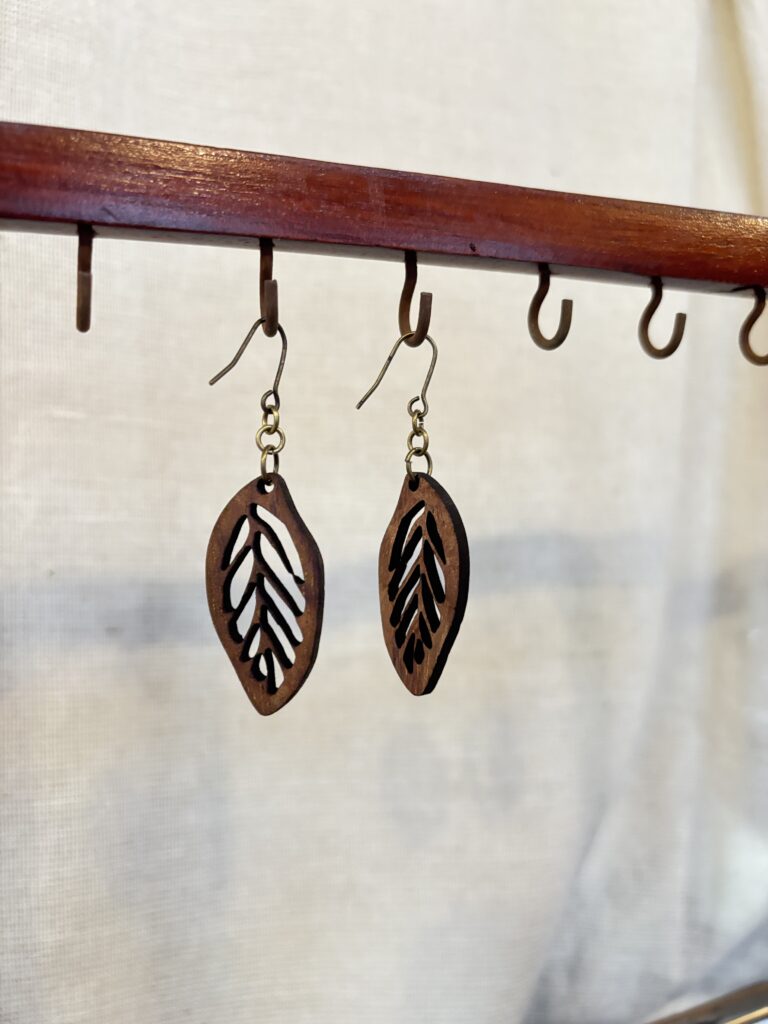 家具制作過程で余った木材の薄板を利用して、アクセサリーを作っています。