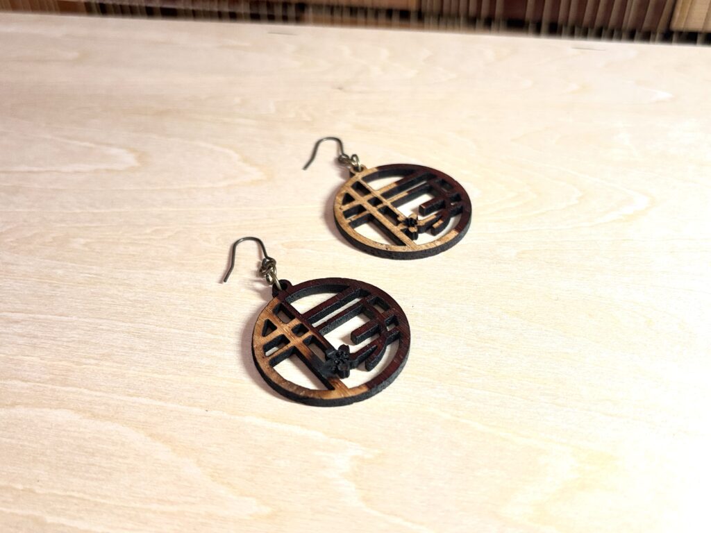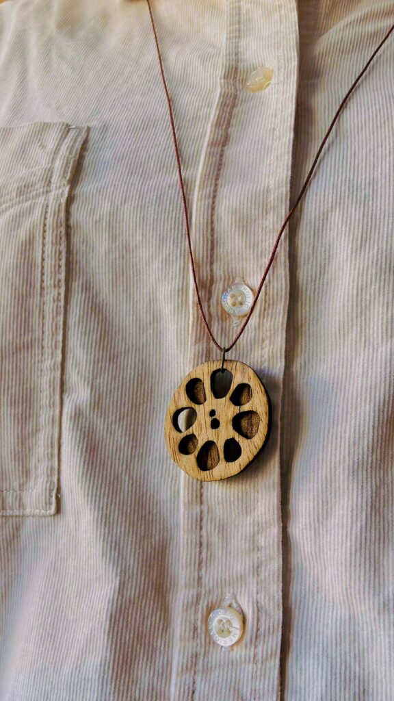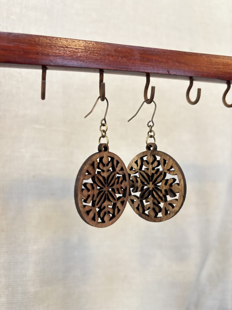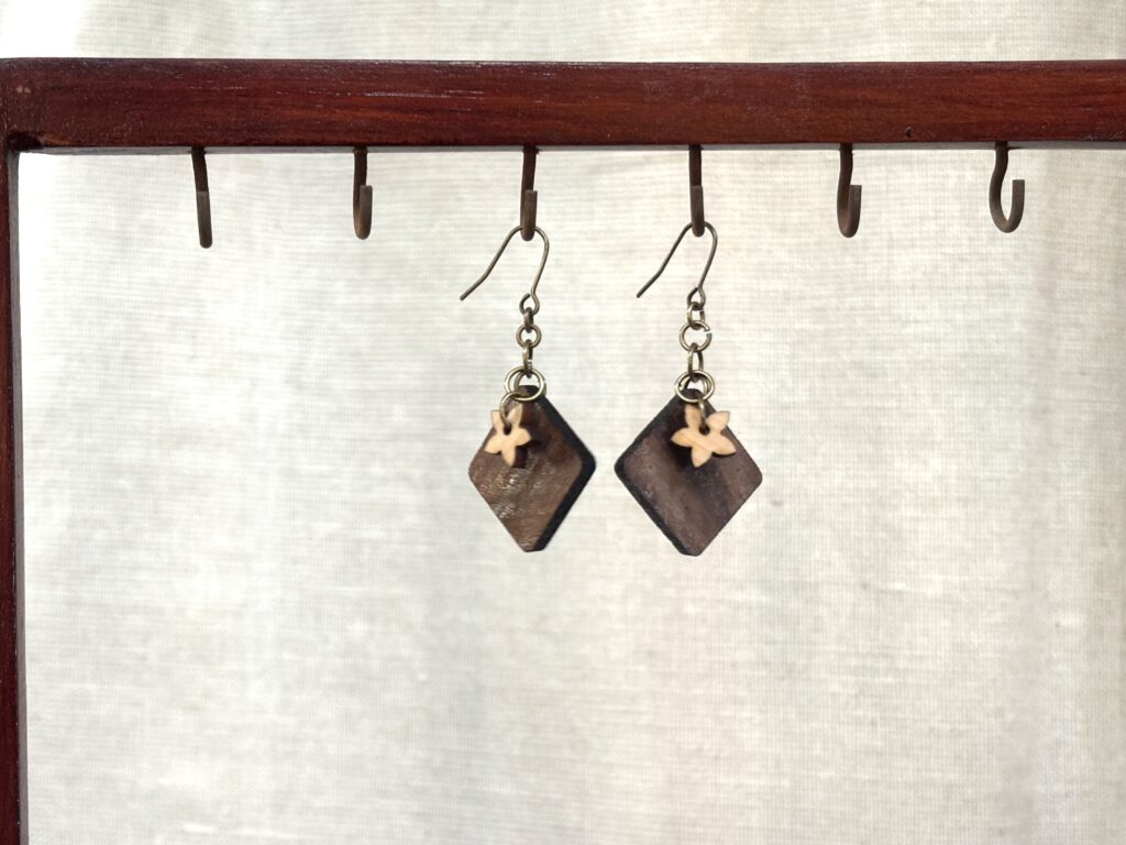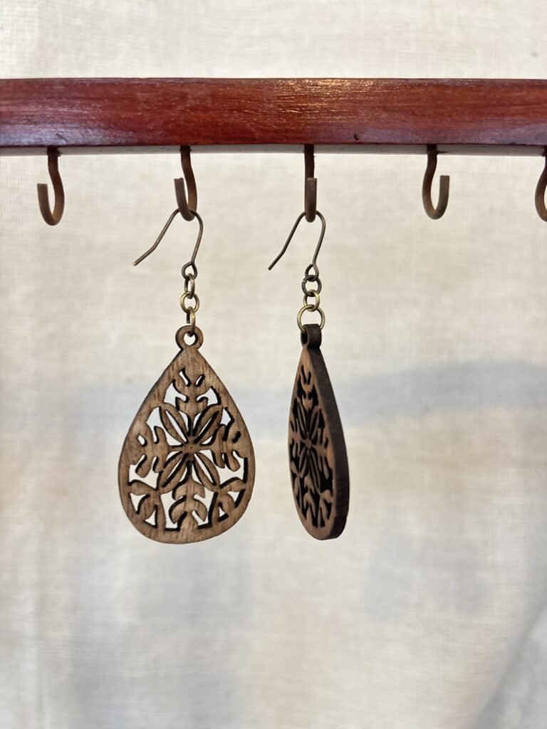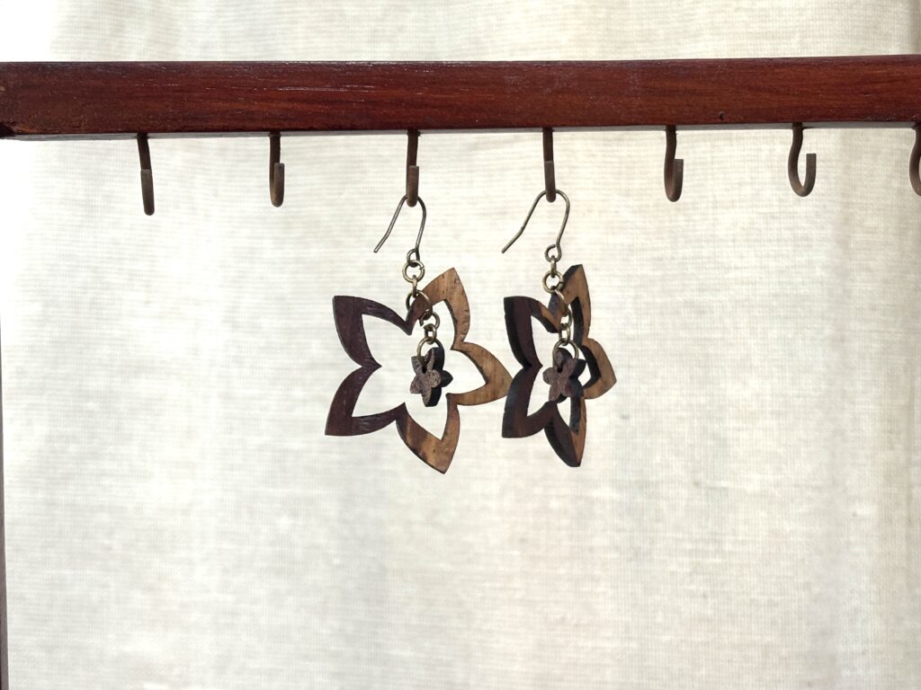 家具制作過程で余った木材の薄板を利用して、アクセサリーを作っています。